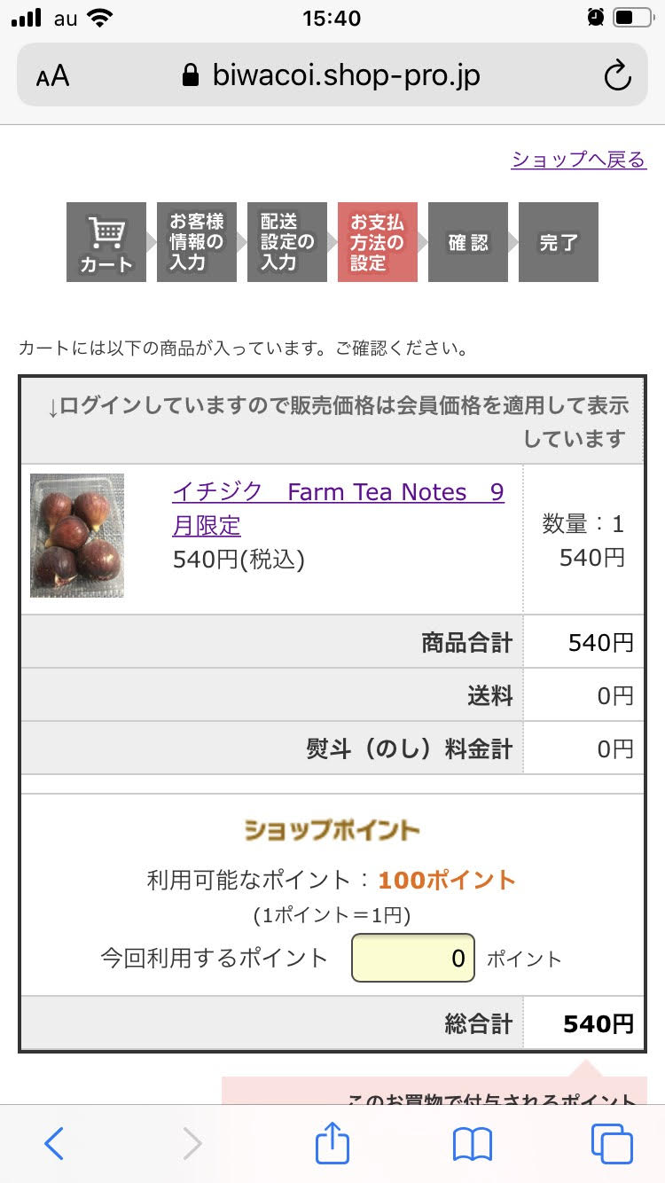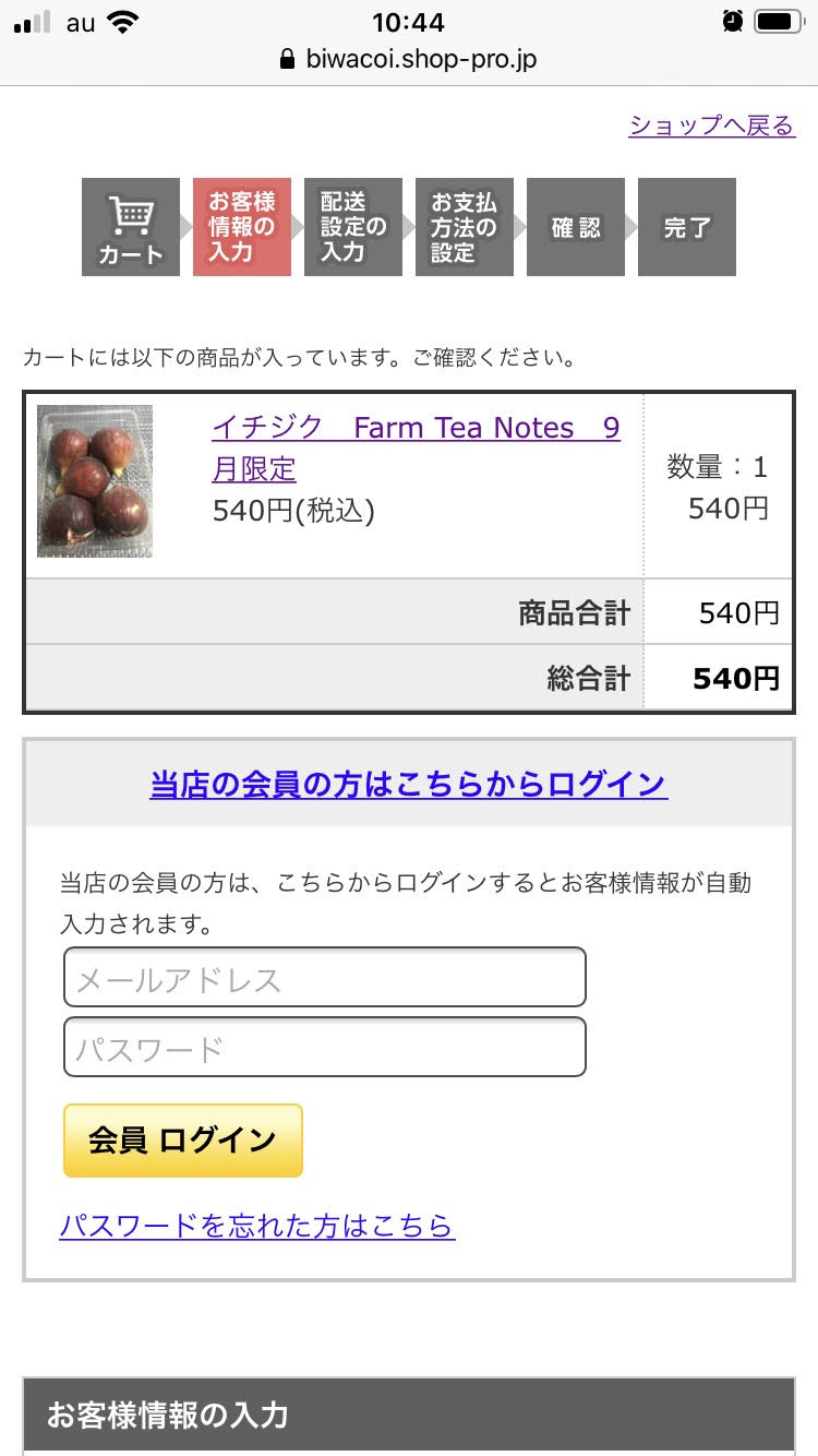 https://biwacoi.shop-pro.jp/)で、9月から季節限定のボックス同梱果物も販売します。会員の皆様におかれましては、以前お渡ししたびわこいSHOPポイントをお使いいただきお買い求めいただきたいと思っております。ポイントをお使いいただくためには、SHOP会員登録が別途必要になります。びわこい会員登録時にいただいた内容はこちらで入力済になっていますが、パスワード設定を行っていただきたく、以下の手順でお願いします。