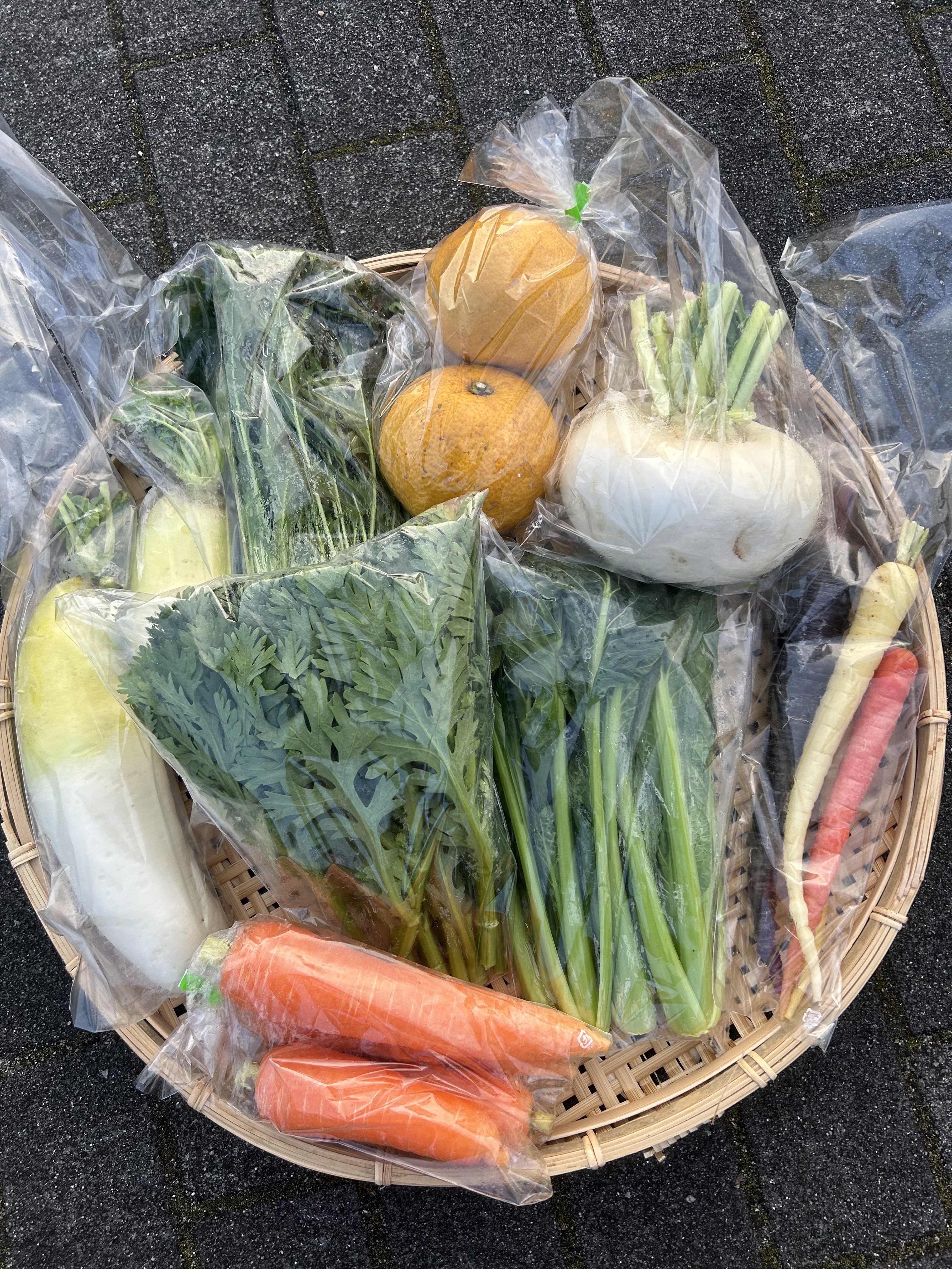大根、小松菜、水菜、人参、かぶ、春菊、カラー人参、はっさく