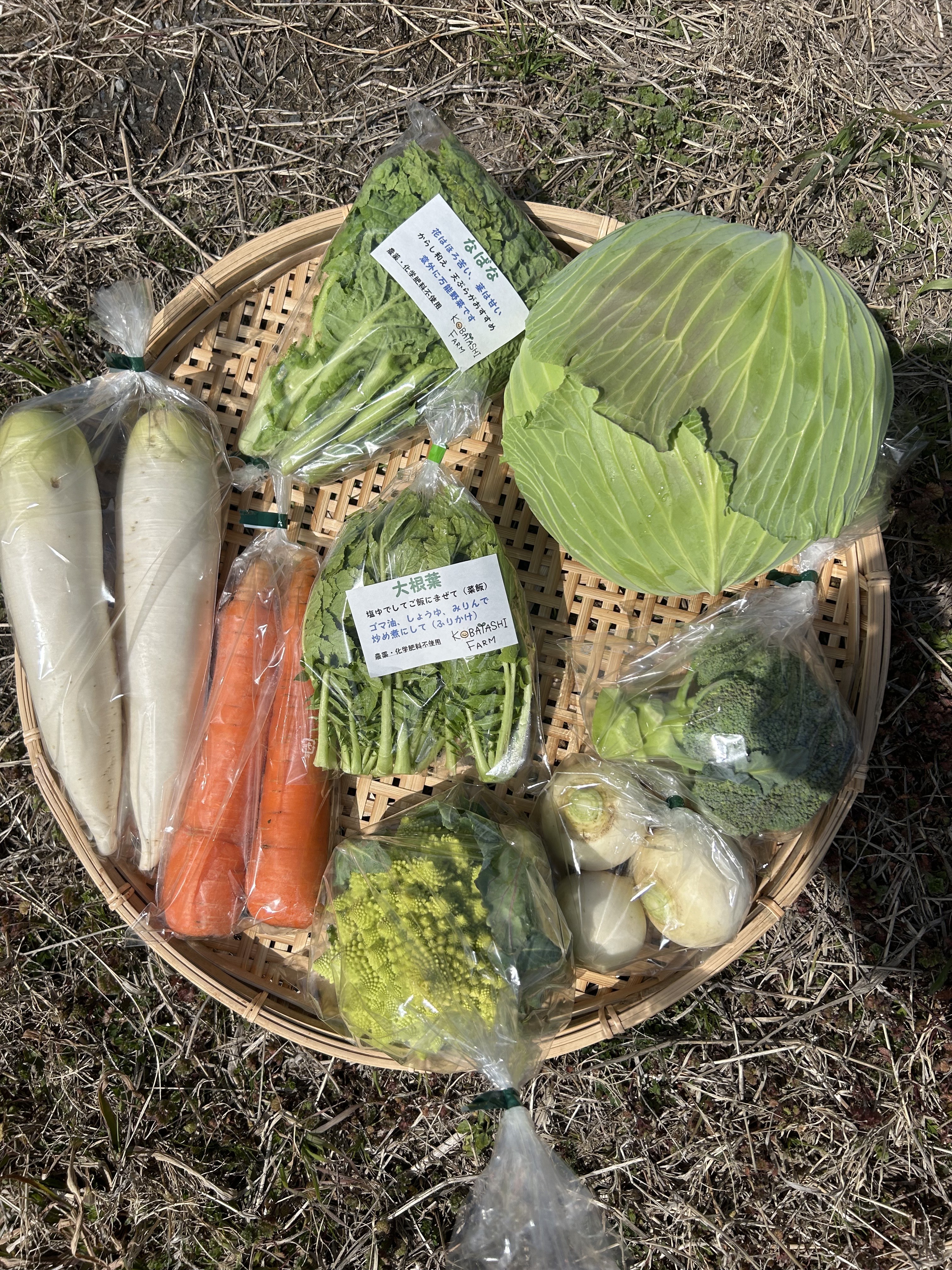 キャベツ、大根、かぶ、人参、なばな、ブロッコリー、ロマネスコ