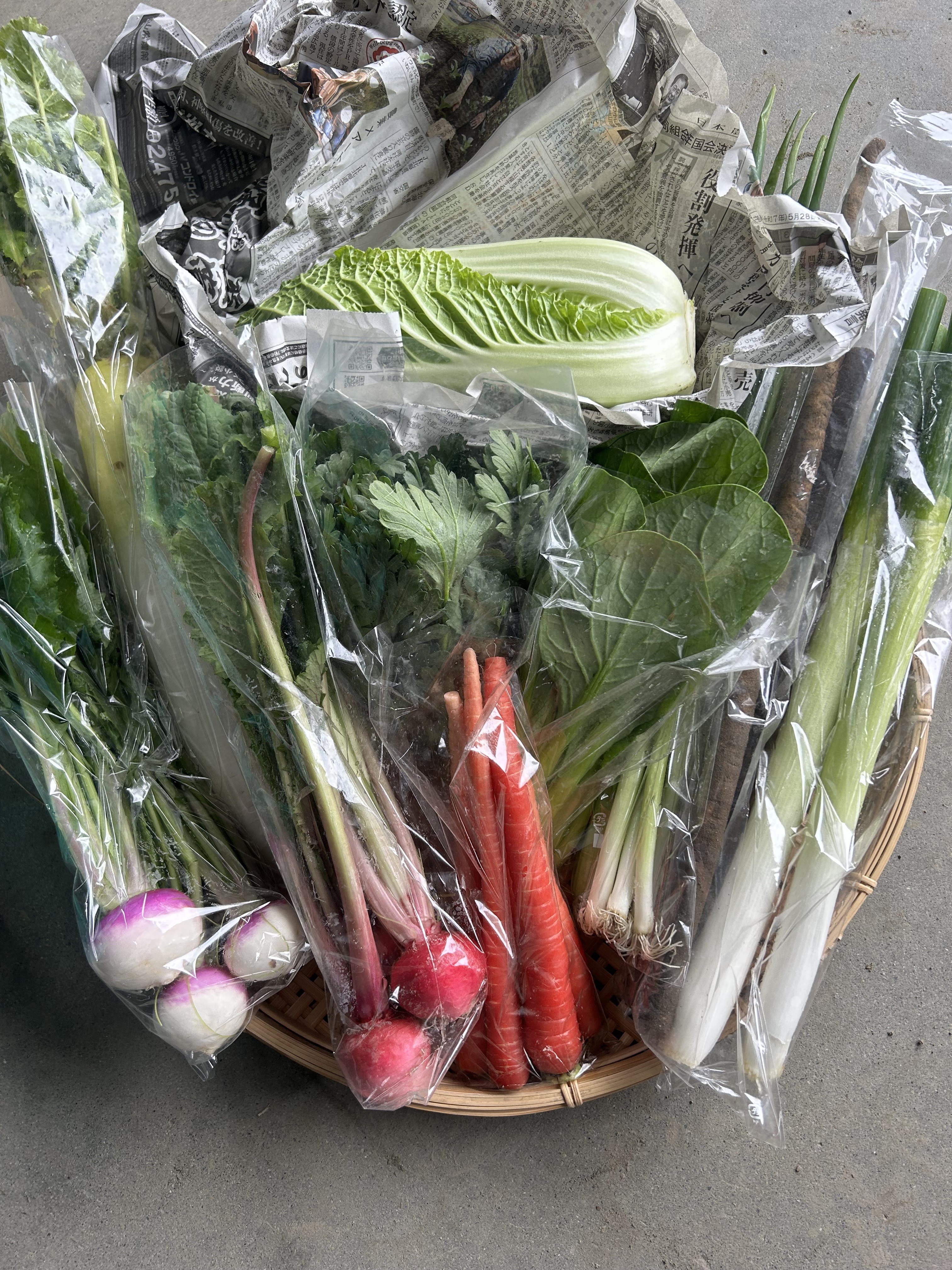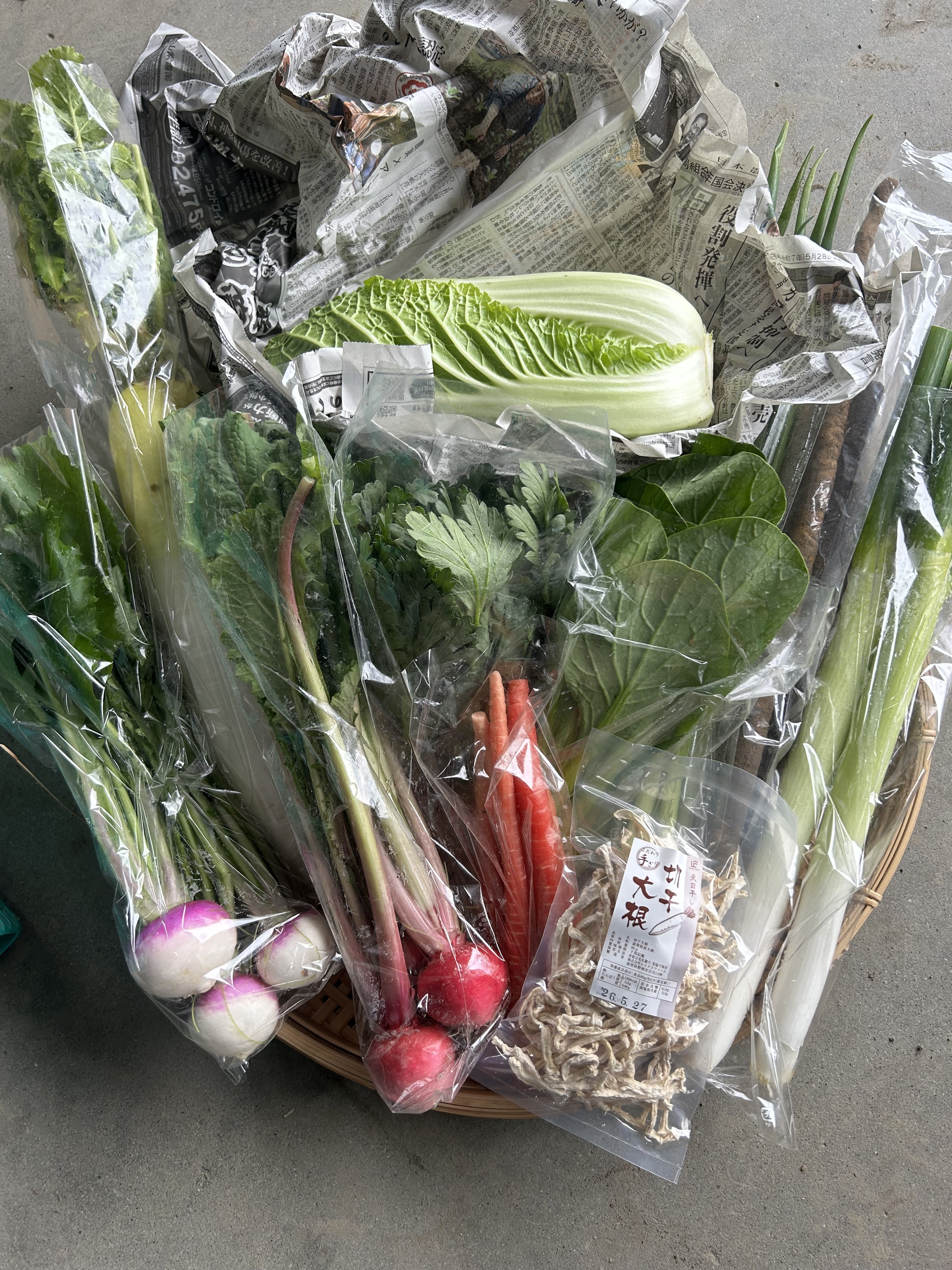 白菜、大根、人参、春菊、小松菜、細ねぎ、太ねぎ、ゴボウ、あやめ雪カブ、かぶ、切干大根